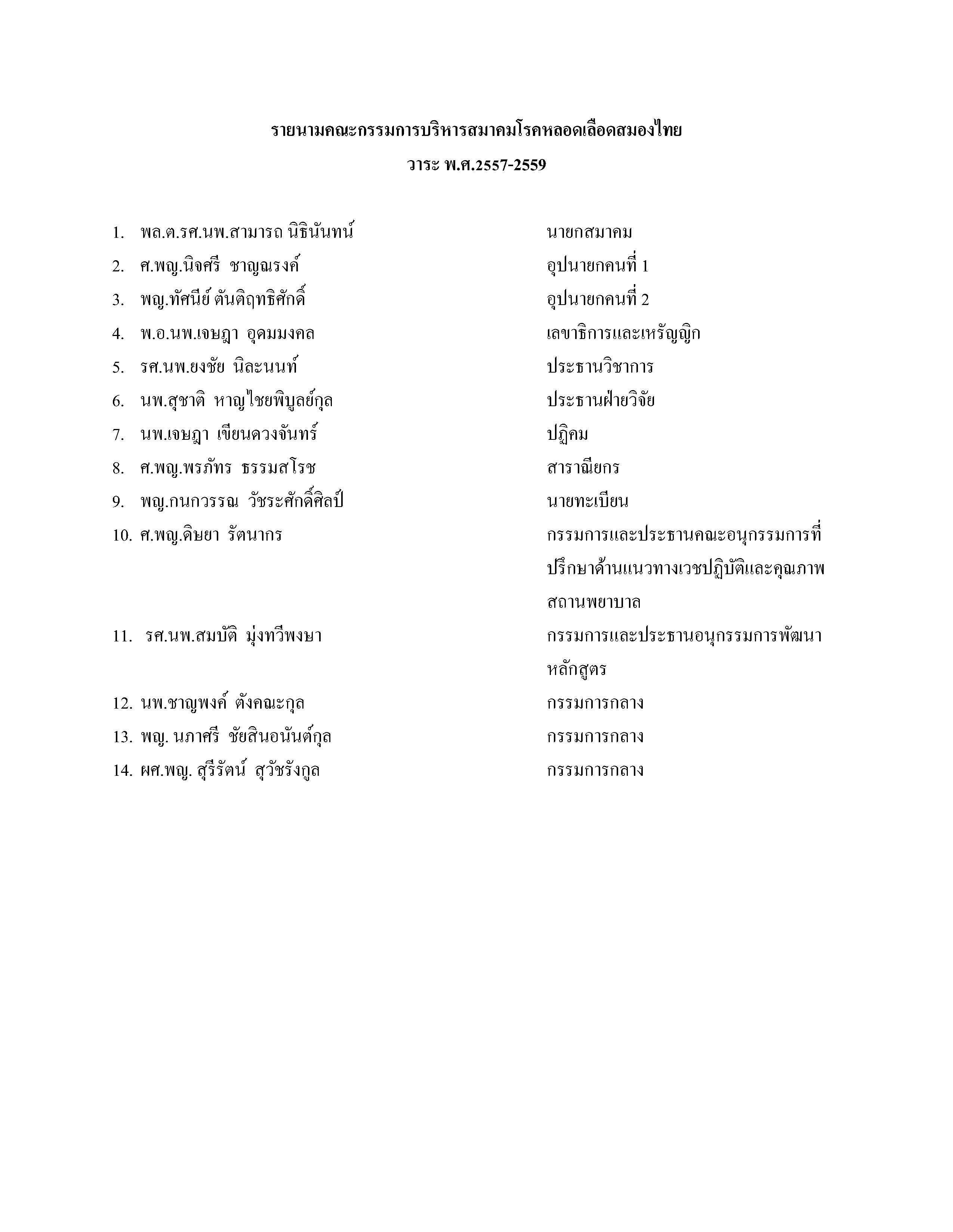 กรรมการบริหารสมาคมโรคหลอดเลือดสมองไทย วาระ พ.ศ.๒๕๕๗-๒๕๕๙
