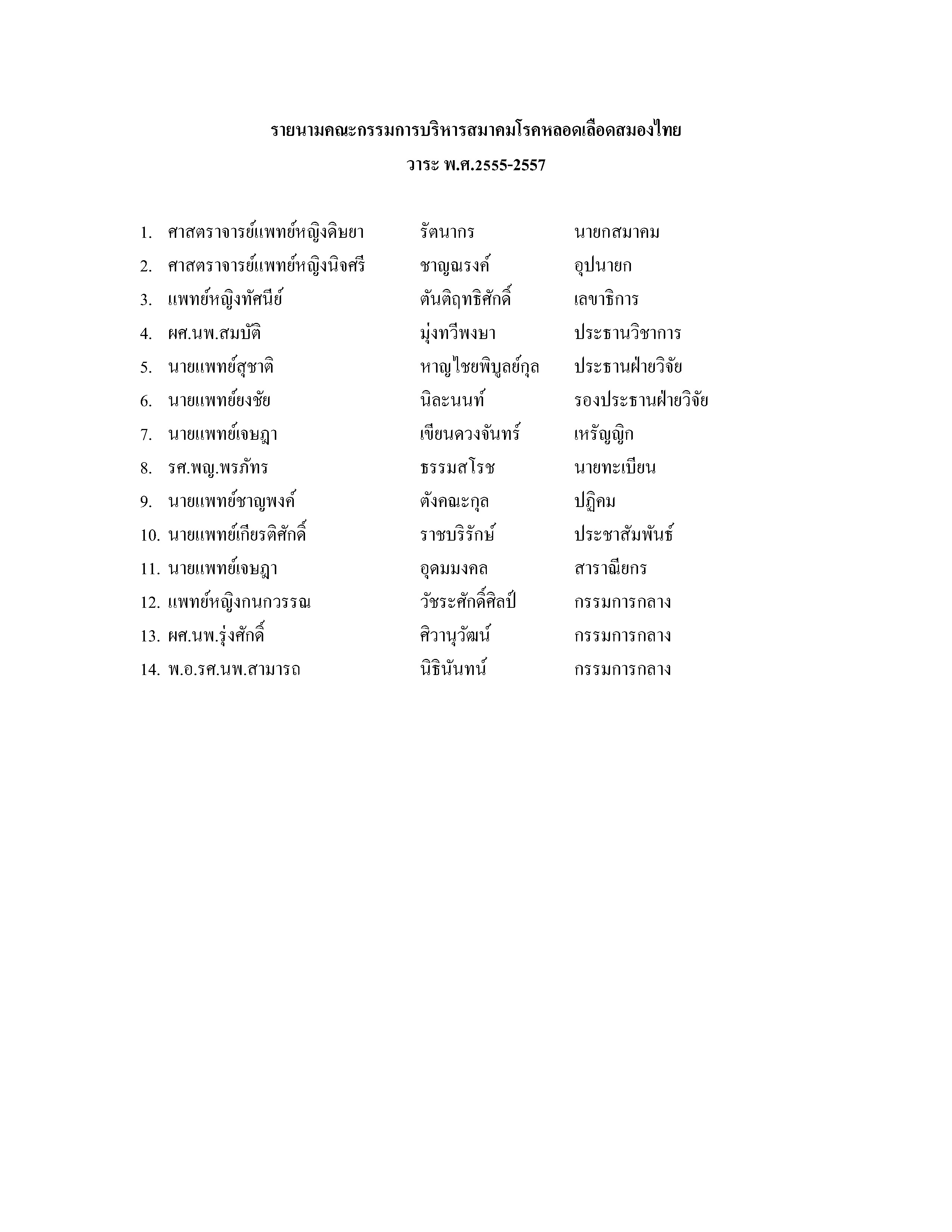 กรรมการบริหารสมาคมโรคหลอดเลือดสมองไทย วาระ พ.ศ.๒๕๕๕-๒๕๕๗