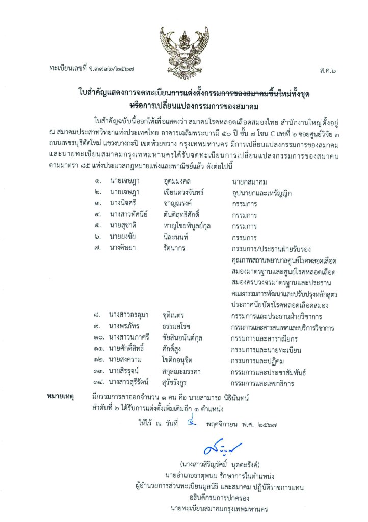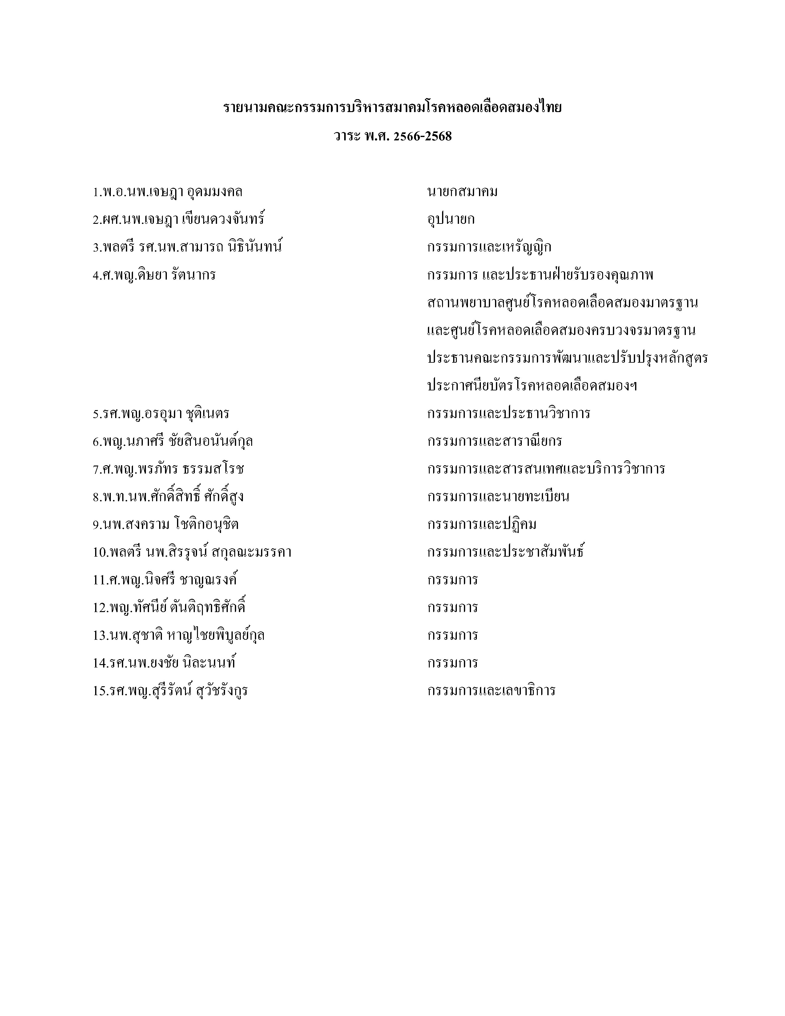 กรรมการบริหารสมาคมโรคหลอดเลือดสมองไทย วาระ พ.ศ.๒๕๖๖-๒๕๖๘