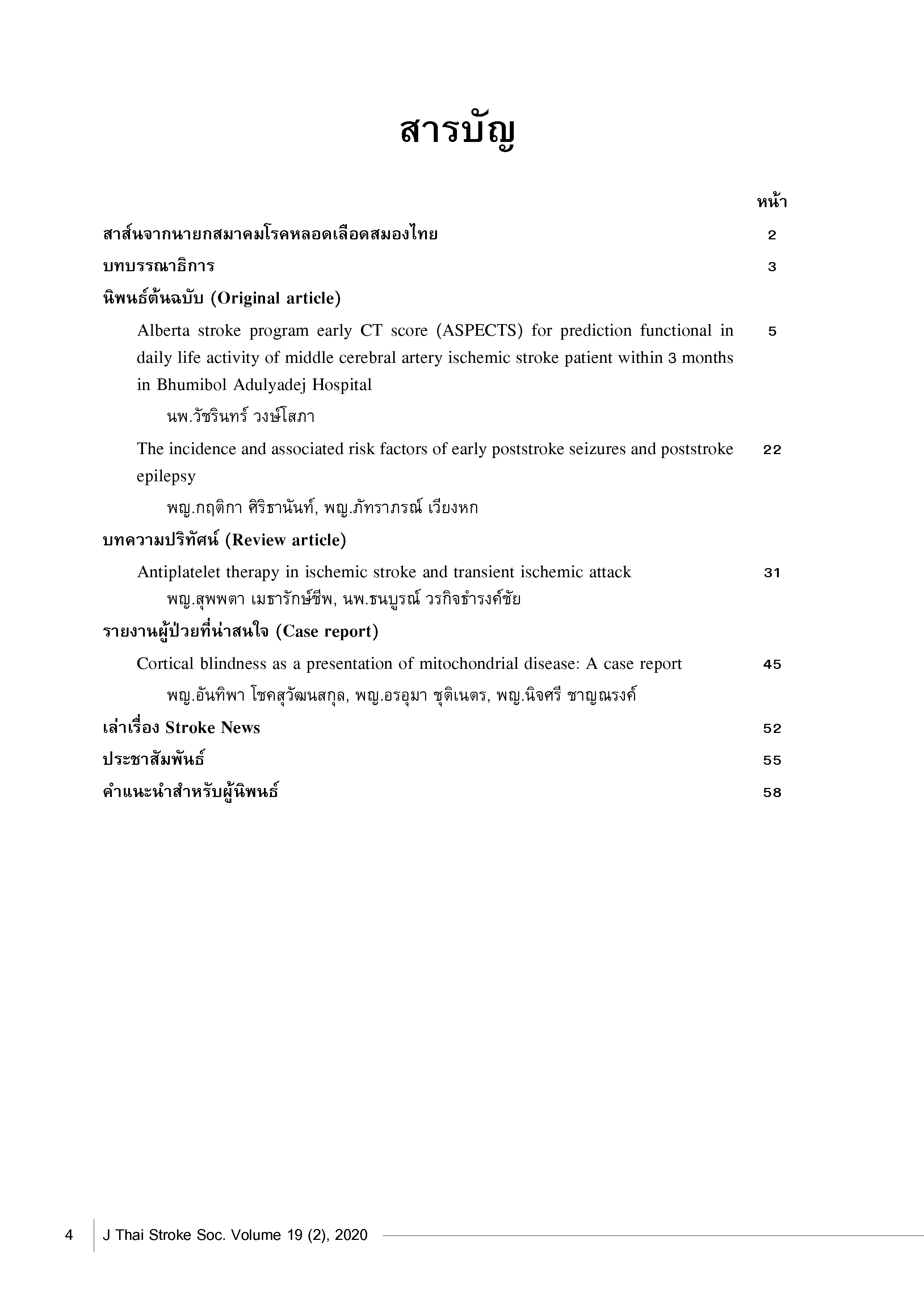 Journal of Thai Stroke Society 2020 Vol.19 No.2