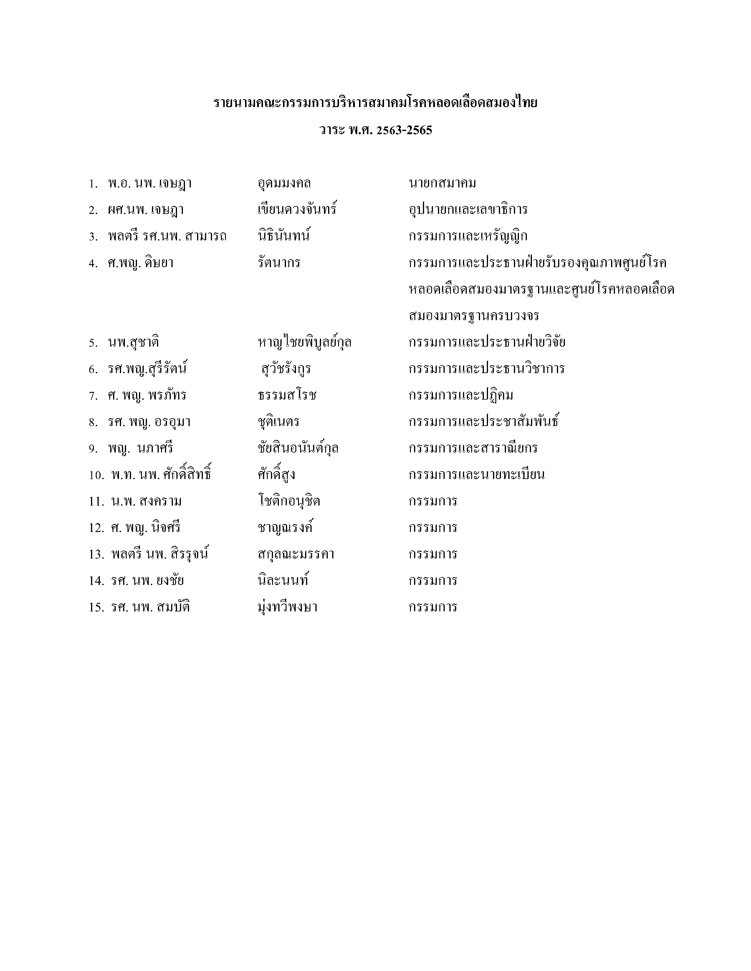 - กรรมการบริหารสมาคมโรคหลอดเลือดสมองไทย วาระ พ.ศ.๒๕๖๖-๒๕๖๘